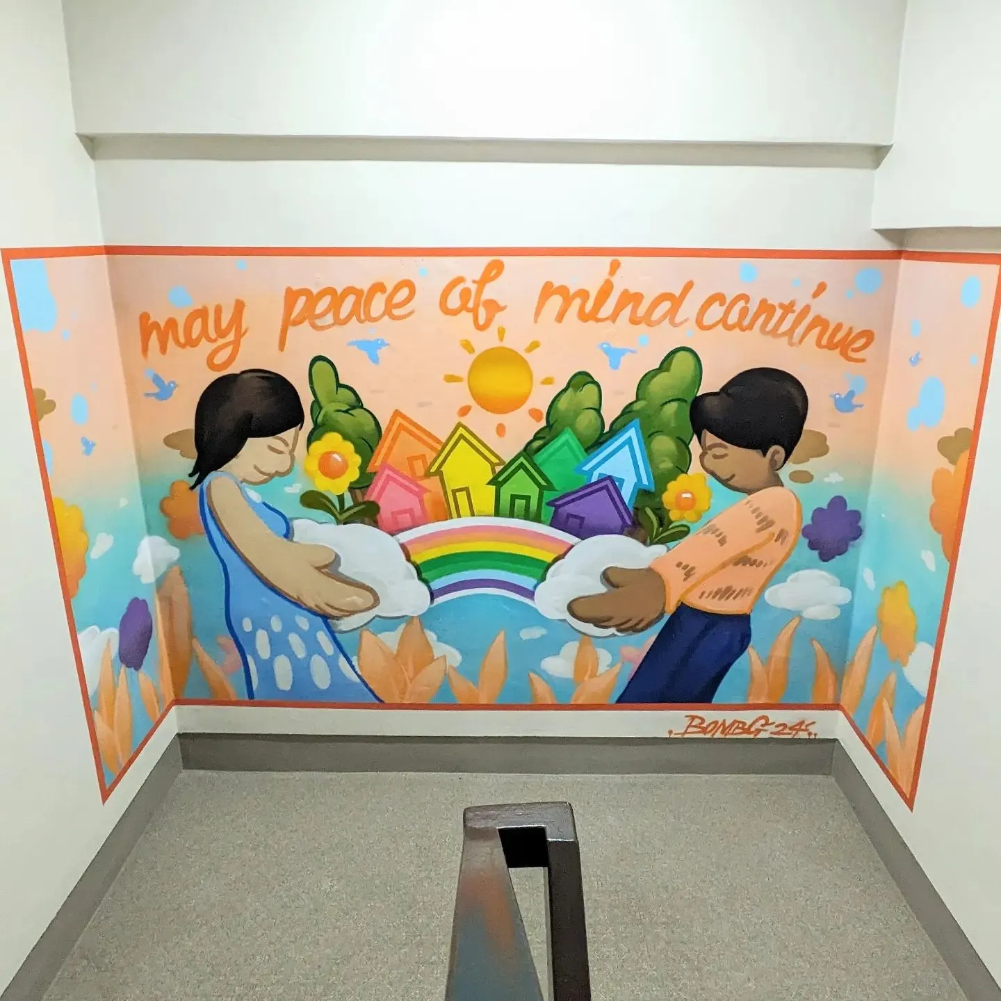 姫路市にてウォールアート制作を行いました! 姫路市にてウォールアート制作を行いました! 【peaceofmind】 Size:W2.8m×H1.6m 岡本法務事務所様 真っ白な階段踊り場に 安らぎを与えられるような 柔らかい色合いのミューラルアートを 制作しました …