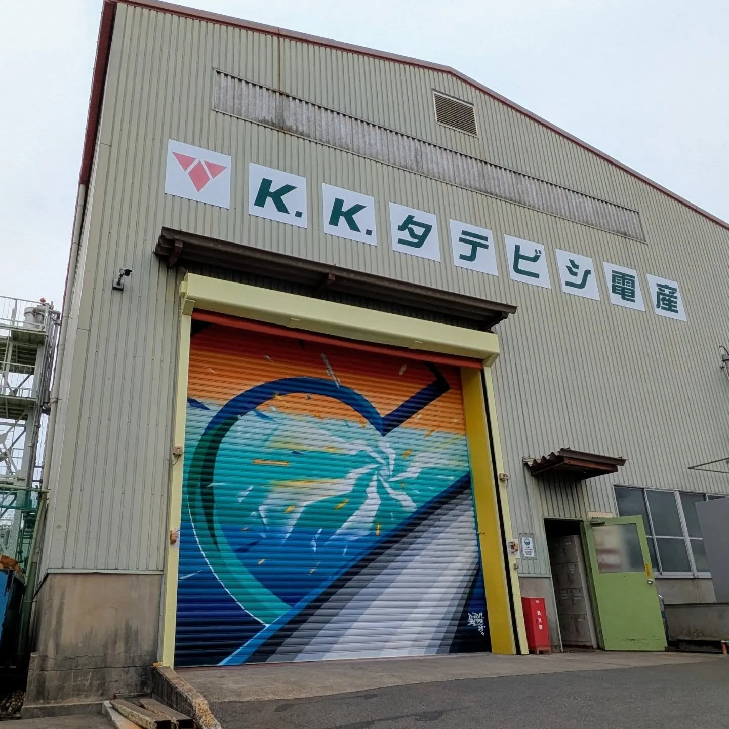 製造のエネルギーをシャッターに込めて 製造のエネルギーをシャッターに込めて工業地域のイメージを変えるアートシャッターへ@tatebishi厚板の曲げ加工を強みとする楯菱電産さんの工場にペイントしました。棟名である“C”のアルファベットを曲げ…
