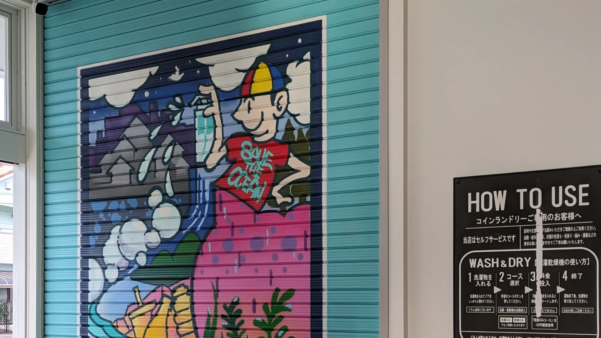 コインランドリーの内装として、