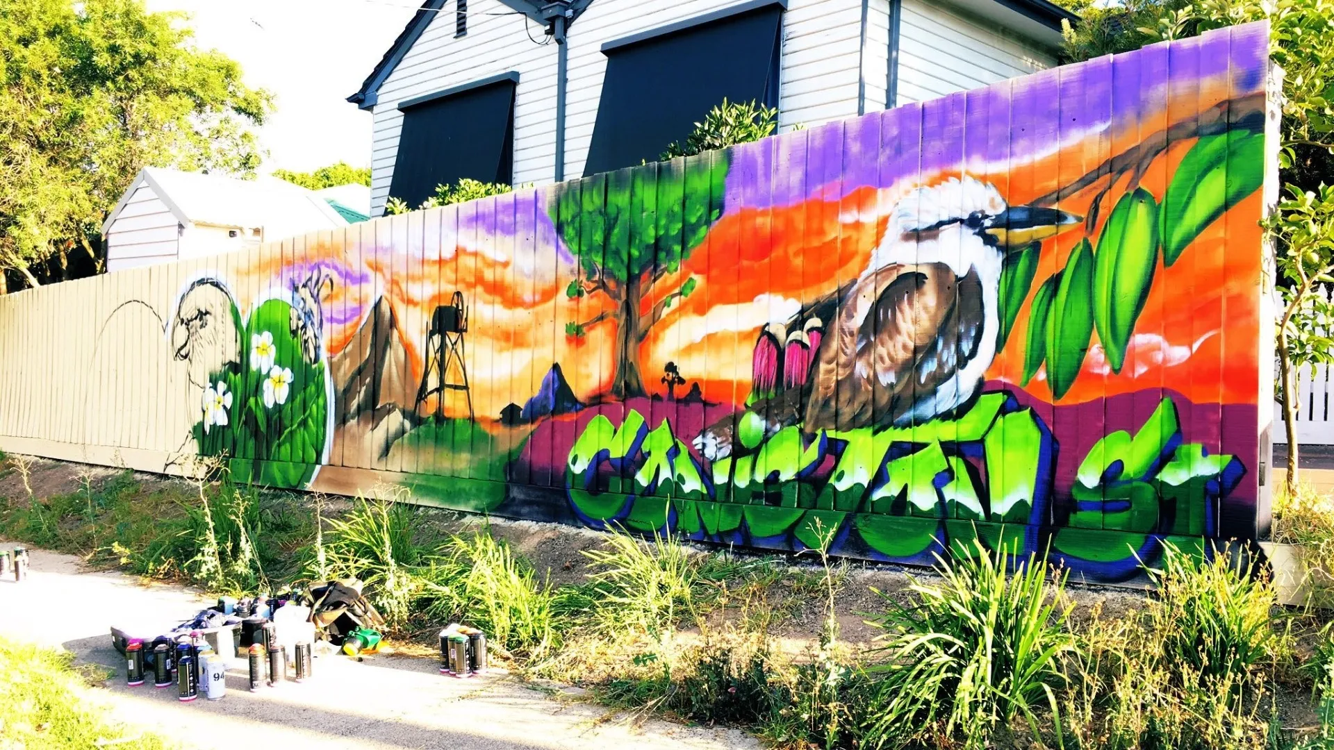 フェンスウォールアート制作です。